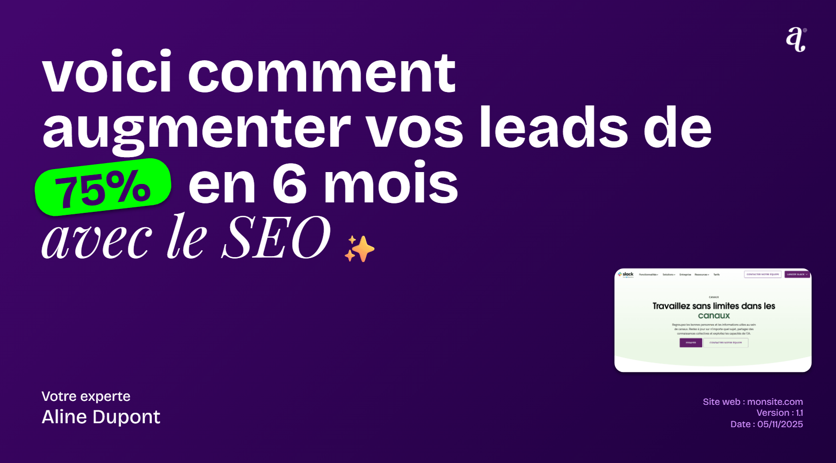 Obtenez une feuille de route complète pour augmenter le chiffre d’affaires de votre site web grâce aux meilleures techniques SEO & CRO (optimisation du taux de conversion) le plus rapidement possible. Ce n’est pas un simple audit, vous repartez avec une stratégie claire, déjà planifiée, vous pouvez commencer à appliquer le jour-même. Site avec <2000 pages.